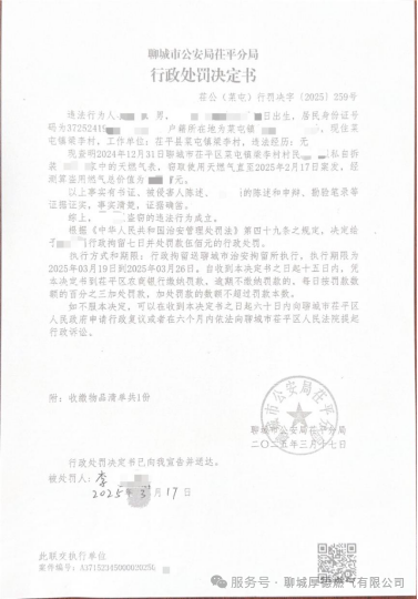 经我司稽查人员专项巡查发现,茌平区菜屯镇梁李村用户李某某擅自拆卸燃气计量装置,违规加装非标计量设备实施盗气。经公安机关调查取证,根据《中华人民共和国治安管理处罚法》第四十九条之规定,依法对李某某作出行政拘留七日并追缴违法所得的处罚决定。目前涉案非法设备已拆除,安全隐患已排除。